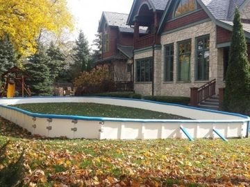The options here are endless. We will not take just the easy rinks. We will build your custom ice rink even with up to 22 inches of water. Remember, you only need 3" of ice above the water to skate.